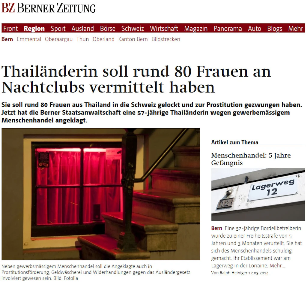 Die Fachstelle Frauenhandel und Frauenmigration (FIZ) in Zürich ist an diesem Erfolg wesentlich beteiligt. Dank ihr und anderen NGOs fühlen sich 20 der 80 identifizierten Opfer genügend geschützt, um den Ermittlern zu erzählen, was sie erlitten haben. Ihre Aussagen ermöglichen es, die Drahtzieherin in Bangkok ausfindig zu machen.