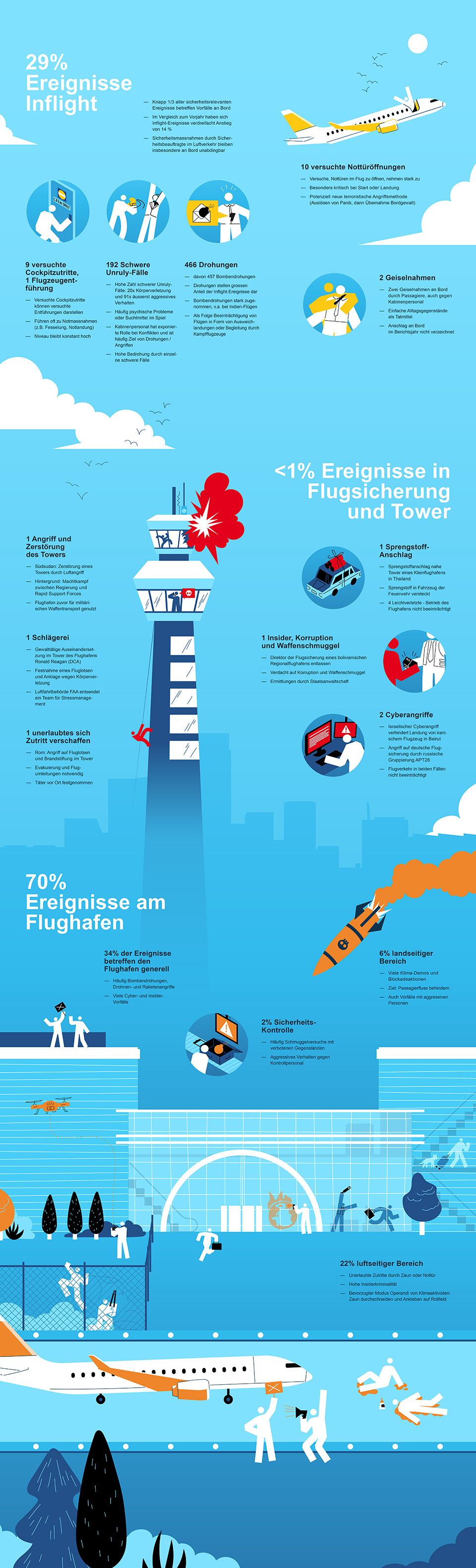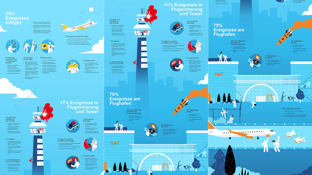 Wie sah die weltweite Sicherheitssituation im Luftverkehr 2024 aus? Diese Infographik bietet einen Überblick der von fedpol analysierten Ereignisse zwischen Mai 2024 und April 2025: