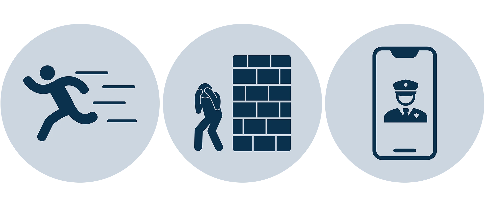 Or hide behind substantial brickwork or a heavy reinforced wall.Call the police: 117If fleeing towards the police: do not run towards them and avoid hectic movements.