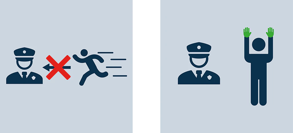 When the police arrive, hold up your hands an show your empty palms.
